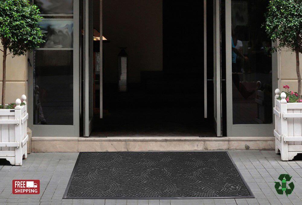 WaterHog Plus Heavy-Duty Entrance Mats are up to 25% heavier than standard WaterHog mats. Still Eco-Friendly by using 100% post-consumer recycled plastic from drink bottles to make the PET Fabric. WaterHog Plus mats showcase a modern contemporary swirl pattern. The rubber swirls create the signature crush-proof bi-level surface which successfully scrape dirt and wipe moisture from shoes, trapping them in the valleys below shoe traffic. By capturing the water and dust in the WaterHog Plus mat you help keep your floors cleaner, dryer and safer! Ultimate Mats offers a 100% Satisfaction Guarantee and free shipping in the lower 48 states on every order.